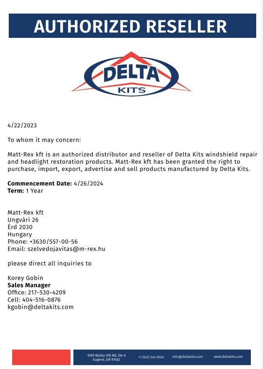 – A szélvédő javítást 2019-ben kezdtem el és nem kellet sok időnek eltelnie, (viszont annál több gyakorlatnak és tapasztalatnak) hogy rájöjjek, maximalista igényeimet az akkoriban Magyarországon kapható és elérhető képzések, szerszámok, fogyó anyagok nem elégítik ki. Ezért úgy döntöttem, utána járok a szakma teljes kialakulásának, hogy hol kezdődött az egész és kik azok akik a legtöbbet tudnak benne segíteni nekem. Kis idő elteltével kiderült, hogy az Amerikai Egyesült Államok a helyes irány. Innen indult minden és itt van talán a legnagyobb követelmény és szakmai elhivatottság a szélvédő javítással kapcsolatban. A számos cég közül akik szerszámokat és különféle ragasztókat kínáltak részemre, a Delta Kits-re esett a választásom. Nem csupán árukészletben és szakmai tapasztalatban / oktatásban tudnak kiemelkedő minőséget nyújtani, de a kedvességük és emberiségük is magasan az élmenyőz tetején jár.